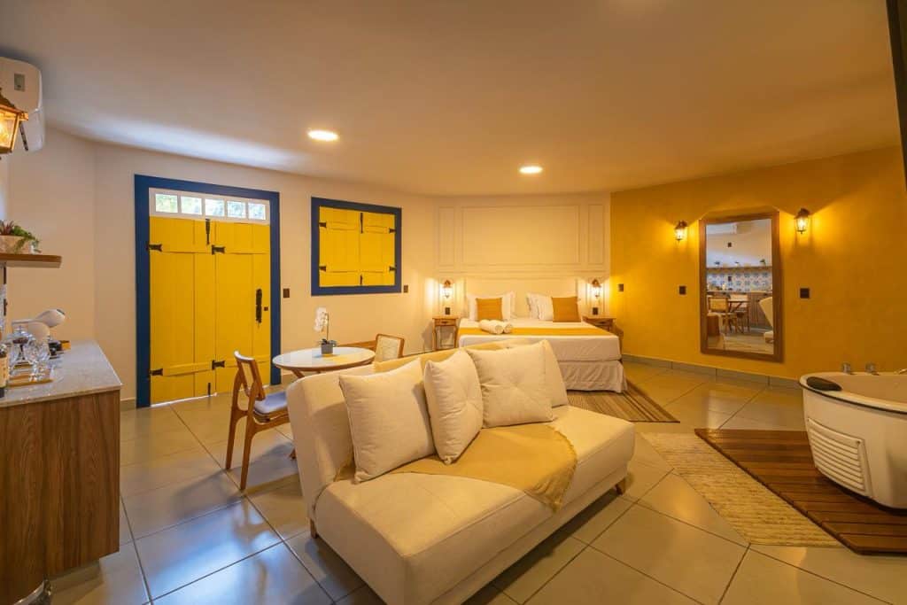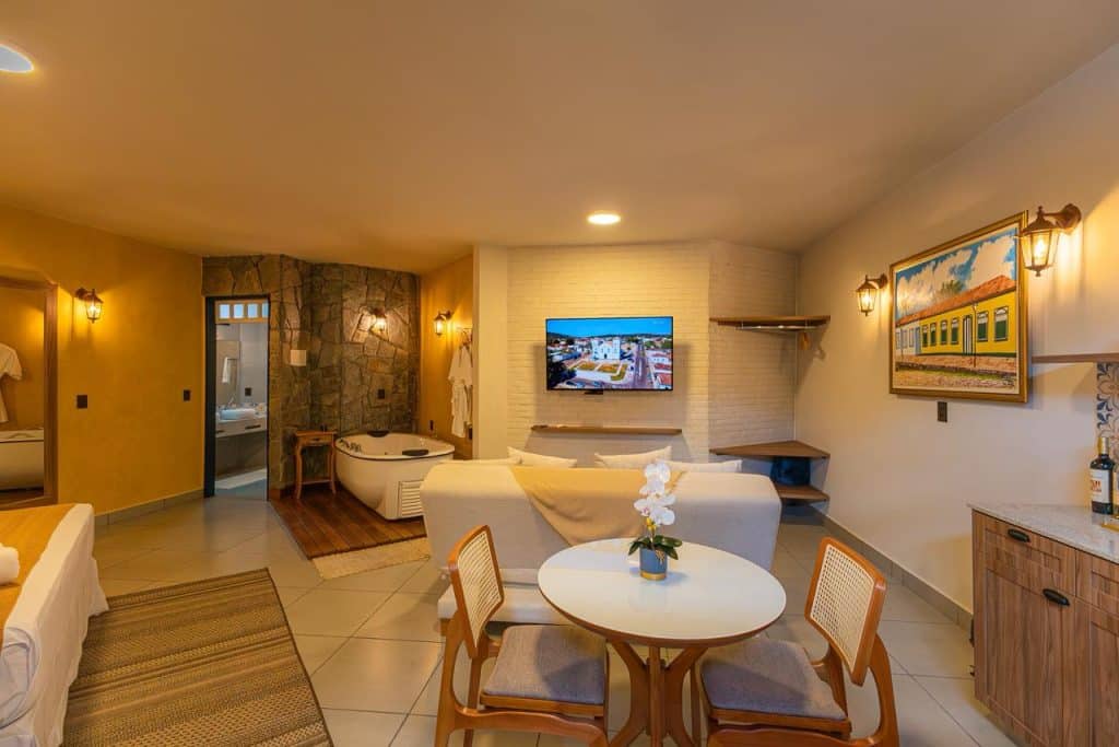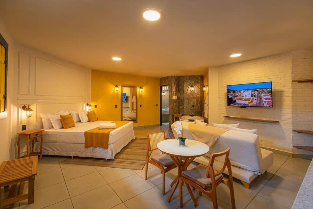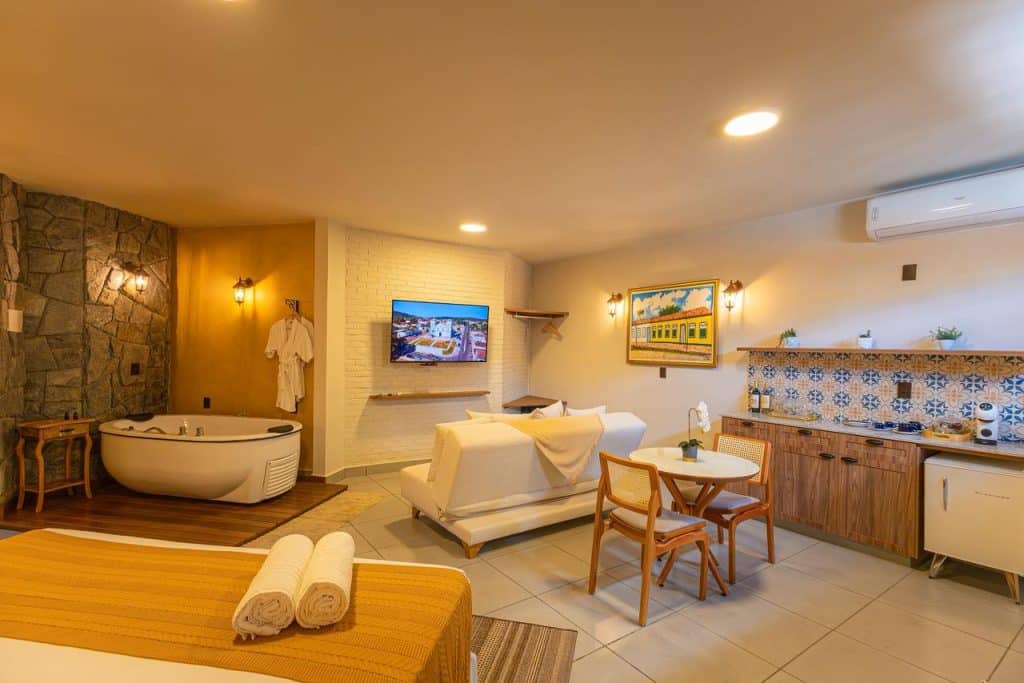 Smart TV 50" Uma cama de casal King Size Sofá-Cama Ar-condicionado Frigobar Banheira de Hidromassagem